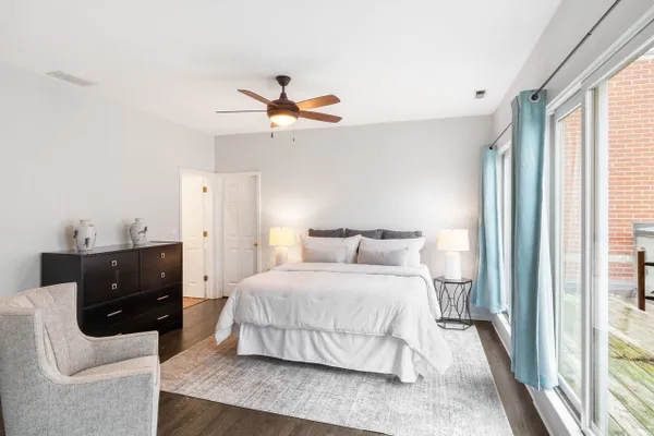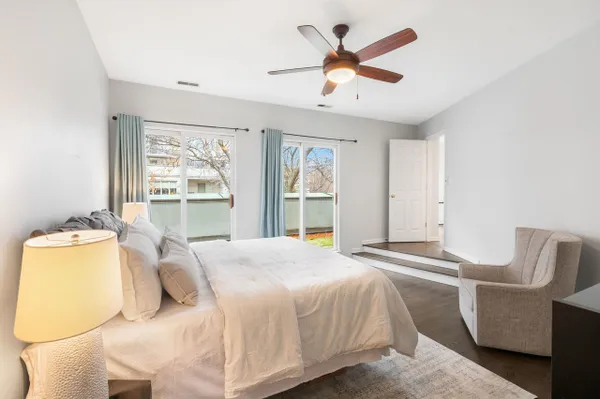 Desirable Harbor Square three bedroom plus den, two and a half bath home with contemporary updates throughout. Situated within a quiet gated complex with a professionally landscaped courtyard and multiple outdoor spaces. Welcoming foyer entry with large walk -in storage closet leads to the spacious formal living area flooded with natural light from the wall of windows. The living space is centered around an inviting gas fireplace with hardwood floors throughout and an open concept layout that offers a seamless flow from living to dining area, excellent for entertaining. Beautifully updated kitchen offers a large eat-in island, two tone cabinetry with lots of storage space, quartz countertops, chic pendant lights and all stainless steel appliances. Upstairs is a versatile sitting area that could also be used as a home office and has access to the relaxing private terrace. Spacious primary bedroom with hardwood floors, large walk-in-closet with custom organizers, and an ensuite primary bathroom with dual vanities, soaking tub, and separate shower. Both bedrooms are spacious with ample closet space and hardwood floors. Second private terrace with slider doors off the guest bedroom and laundry closet conveniently located on the bedroom level. Attached single car garage. Freshly painted throughout and the epitome of move in ready! Prime South Loop location near Grant Park, the lakefront trail, Museum Campus, many wonderful shops and restaurants, with convenient access to public transit and expressways.