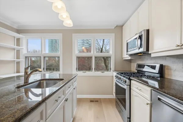 Oversized two bedroom, two and a half bath end unit townhome at Harbor Square. This sunlit home has so much to offer; light oak hardwood floors throughout, generous room sizes, and two flexible spaces that work as offices, workout rooms, or play spaces. The main floor has a large living room and formal dining room separated by a double sided wood burning fireplace with gas start. The sunny kitchen features white cabinets and open shelving, an island with room for seating, and a large, well-organized pantry. An office separated by elegant French pocket doors and an updated powder room round out the first floor. Upstairs, the primary suite features a large bathroom with two vanities, whirlpool tub, separate shower, and large organized walk-in closet. The second bedroom leads out to a balcony overlooking Mark Twain park. A third room next to the primary bedroom makes a great second office, workout room, play room, or nursery. The hall bath has a shower tub combo, and full size stackable laundry is conveniently located on the second floor. Attached one car garage with storage, plus a driveway for a second car. Located in the rear of this rare gated complex, one side of this home looks out on an attractive, well-landscaped courtyard, and the other overlooks charming Mark Twain Park, with southern exposure providing great year-round natural light. Well-managed association with good reserves. Assessments include exterior maintenance, cable, and internet service. With easy access to multiple parks, Northerly Island, Grant Park, Soldier Field, Museum Campus, and numerous South Loop restaurants, this home is an oasis in the heart of the city. Easy access to all expressways, Lake Shore Dr, and Red/Green/Orange El lines. Coveted South Loop Elementary District. Pet friendly with several dog parks nearby!